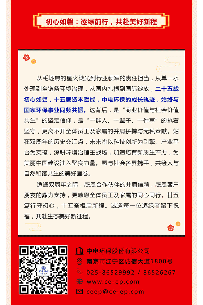 中電環(huán)保股份有限公司是南京市首家環(huán)保上市公司(股票簡(jiǎn)稱:中電環(huán)保,股票代碼:300172),南京環(huán)保產(chǎn)業(yè)協(xié)會(huì)會(huì)長(zhǎng)單位,國(guó)家級(jí)聯(lián)盟理事長(zhǎng)單位,是生態(tài)環(huán)境治理服務(wù)商,主營(yíng)(3+1):水務(wù)、固危廢、煙氣治理及產(chǎn)業(yè)創(chuàng)新平臺(tái),包括:工業(yè)水處理、污水處理及水環(huán)境綜合治理;固危廢土壤、污泥餐廚垃圾處理;煙氣及VOCS治理;智慧環(huán)保;高端裝備等。